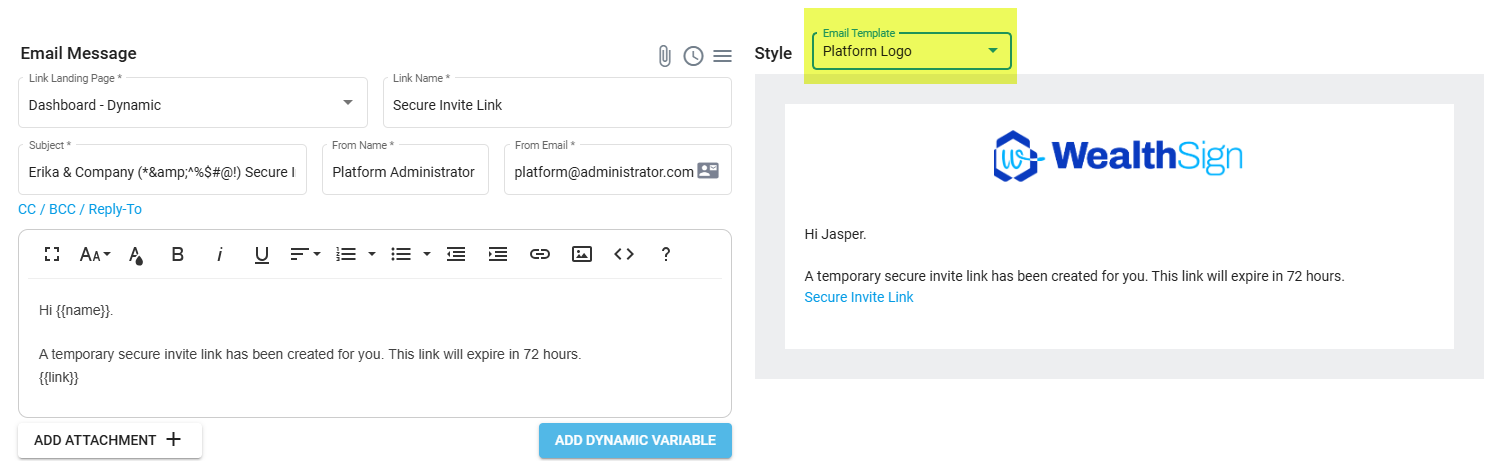 The logo that appears in the email editor is taken from the logo uploaded to your platform.