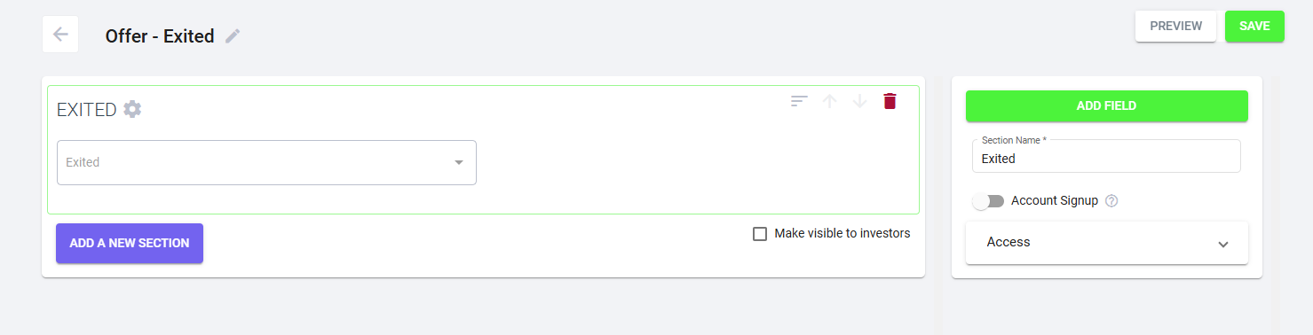 - If you would like to share the information in the form, you can use the option to Make visible to investors