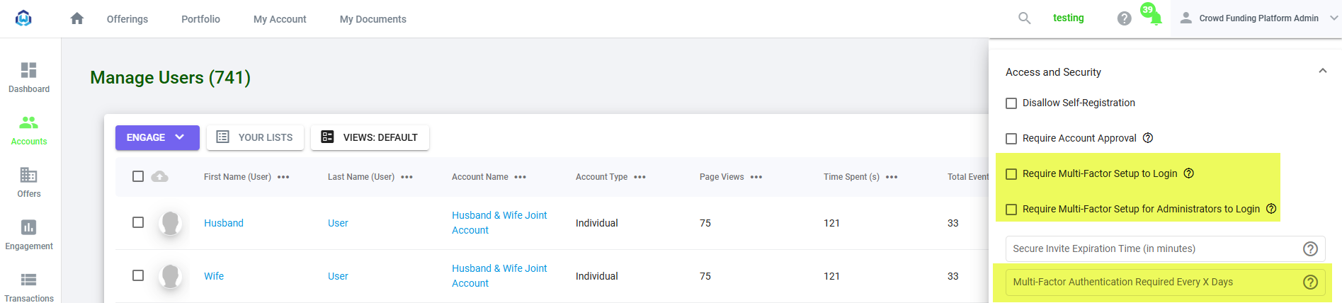 You also have the option to require that all users set up Multi-Factor Authentication. You can enable this in your Account Settings, and choose how often your users will need to authenticate. Alternatively, you can require that only Admin users set up MFA: