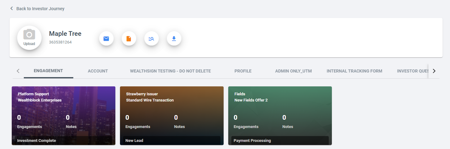 - Confirm which campaigns the user has been included in, and the stage of the Investor Journey