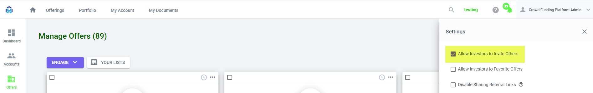 If you would like to allow your investors to invite others to your platform, you can do so.